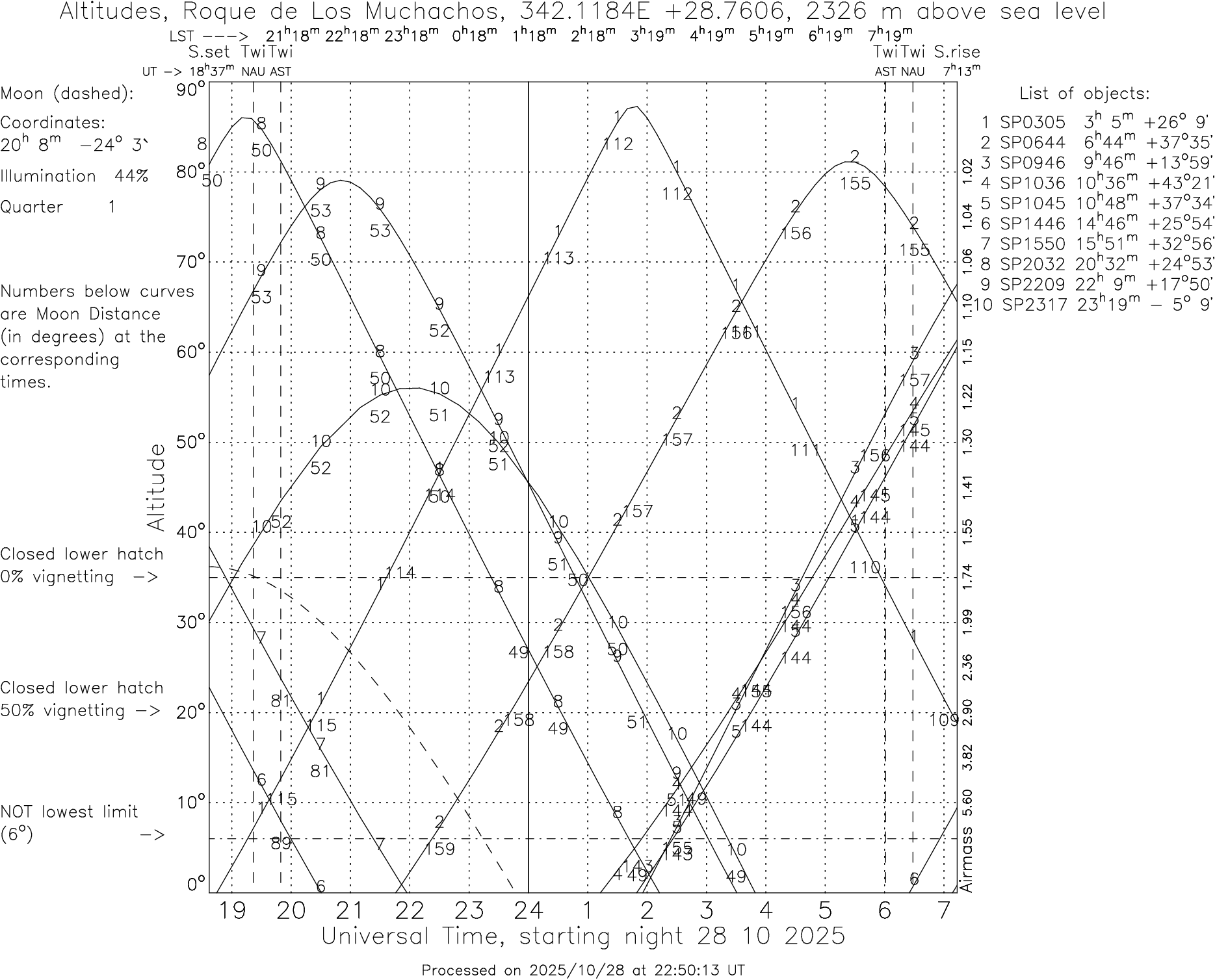 - pick a low-airmass star from the catalogue SPnnnnSnnn (see table below)