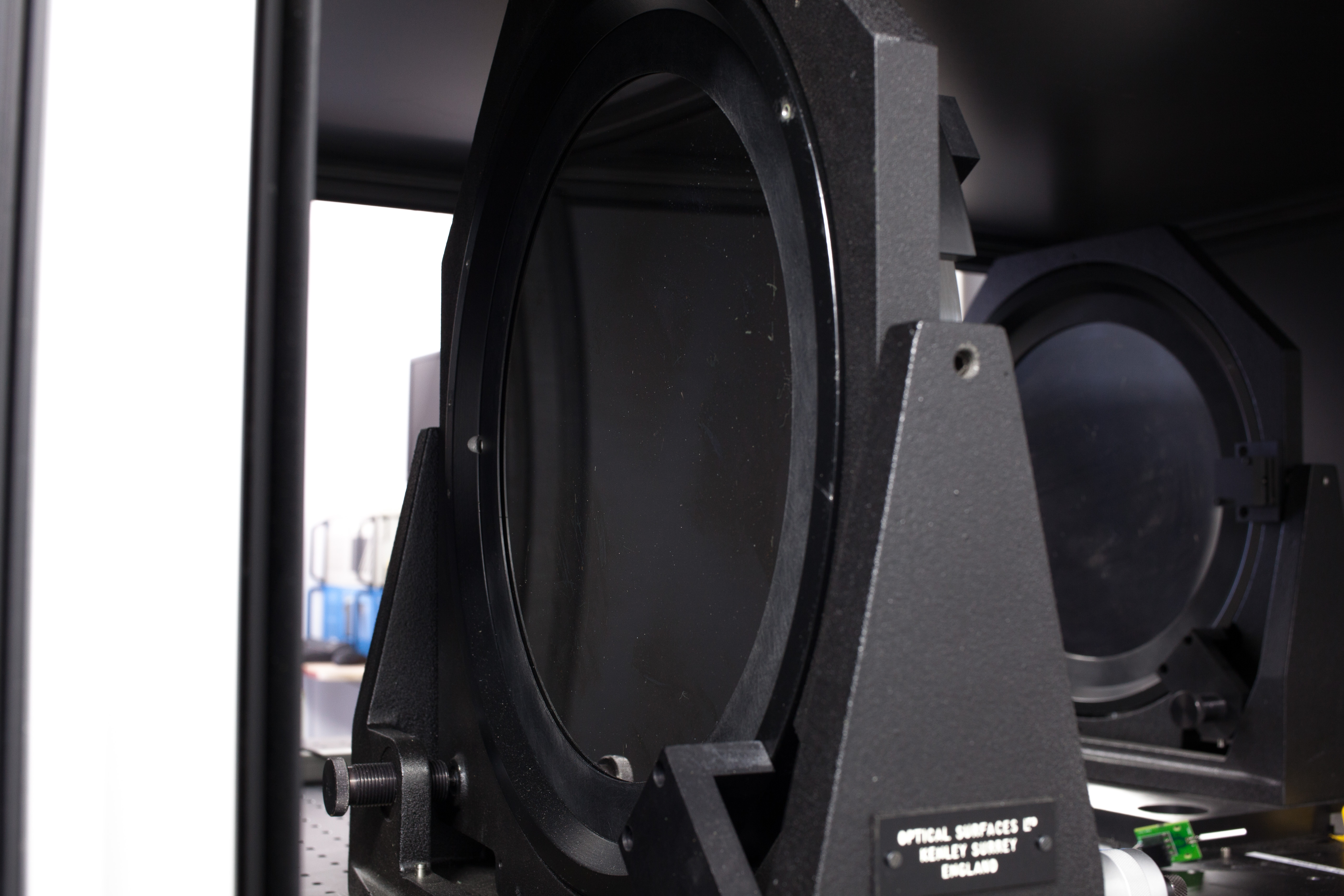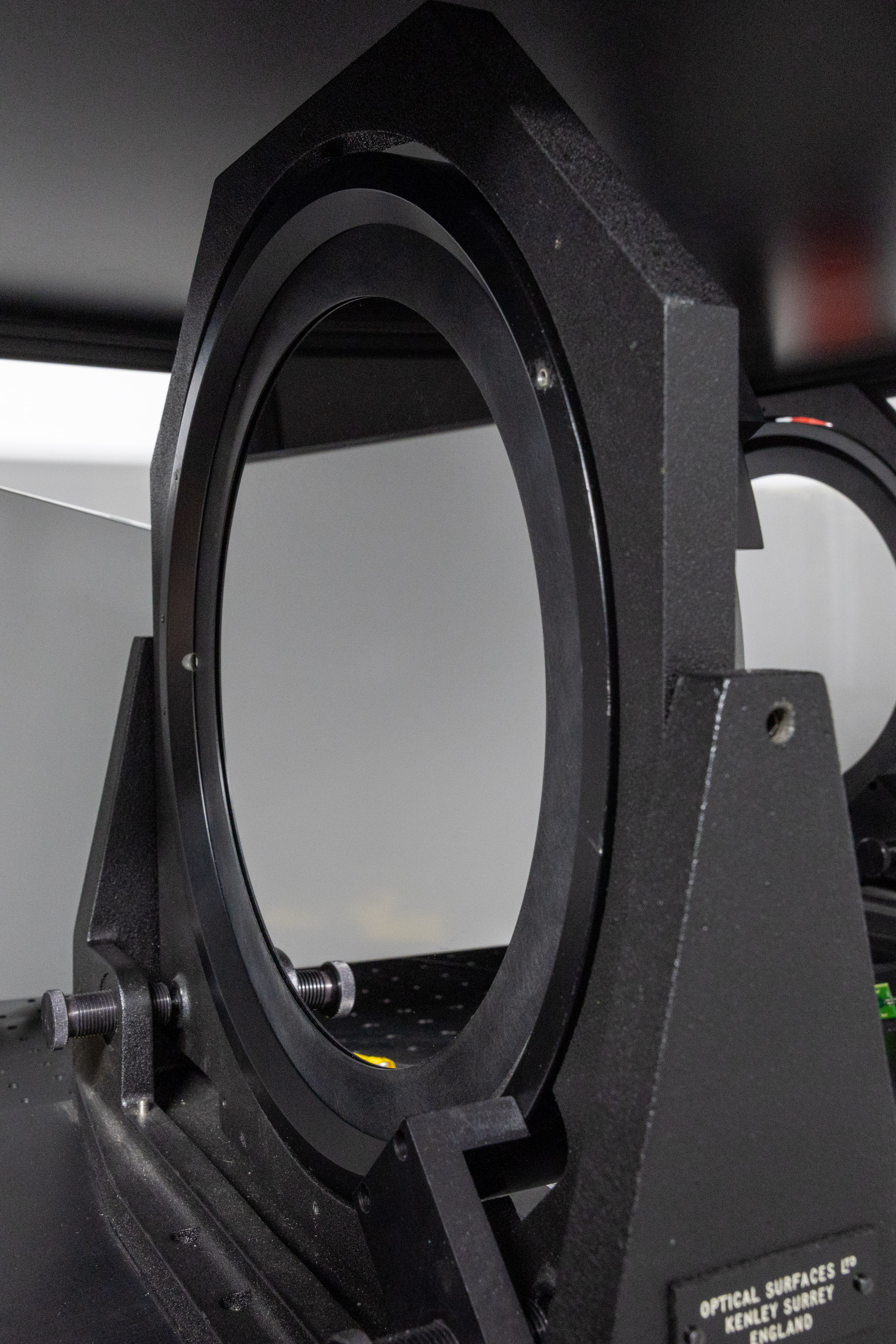 Here A and B are the collimators, and F the flat mirror. Mirror A (left in above pictures with both mirrors) is a double-pass mirror.